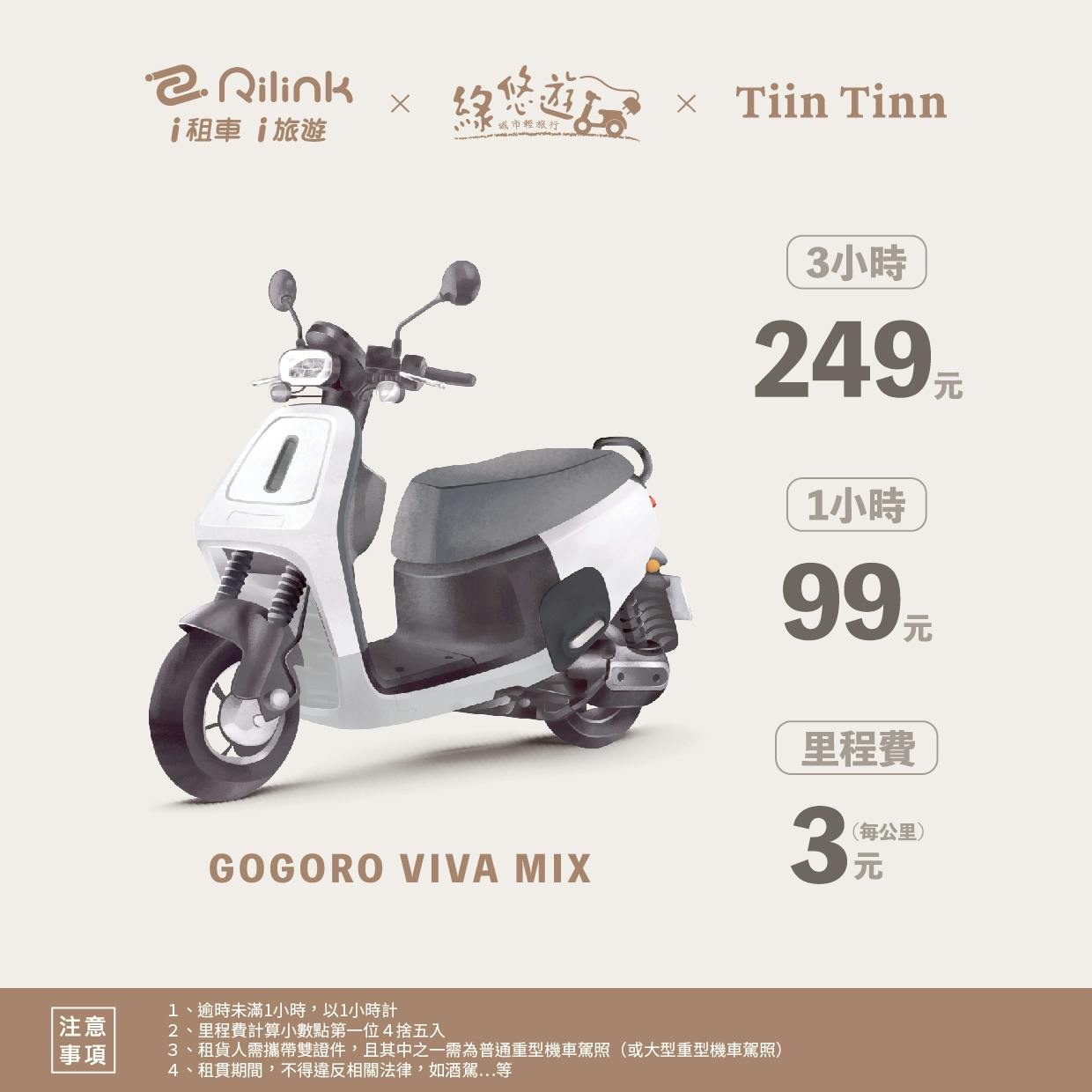 每小時$99起,三小時優惠$249,週一~週四24小時$500,週五~週日24小時$600,里程費用另計,騎多少算多少