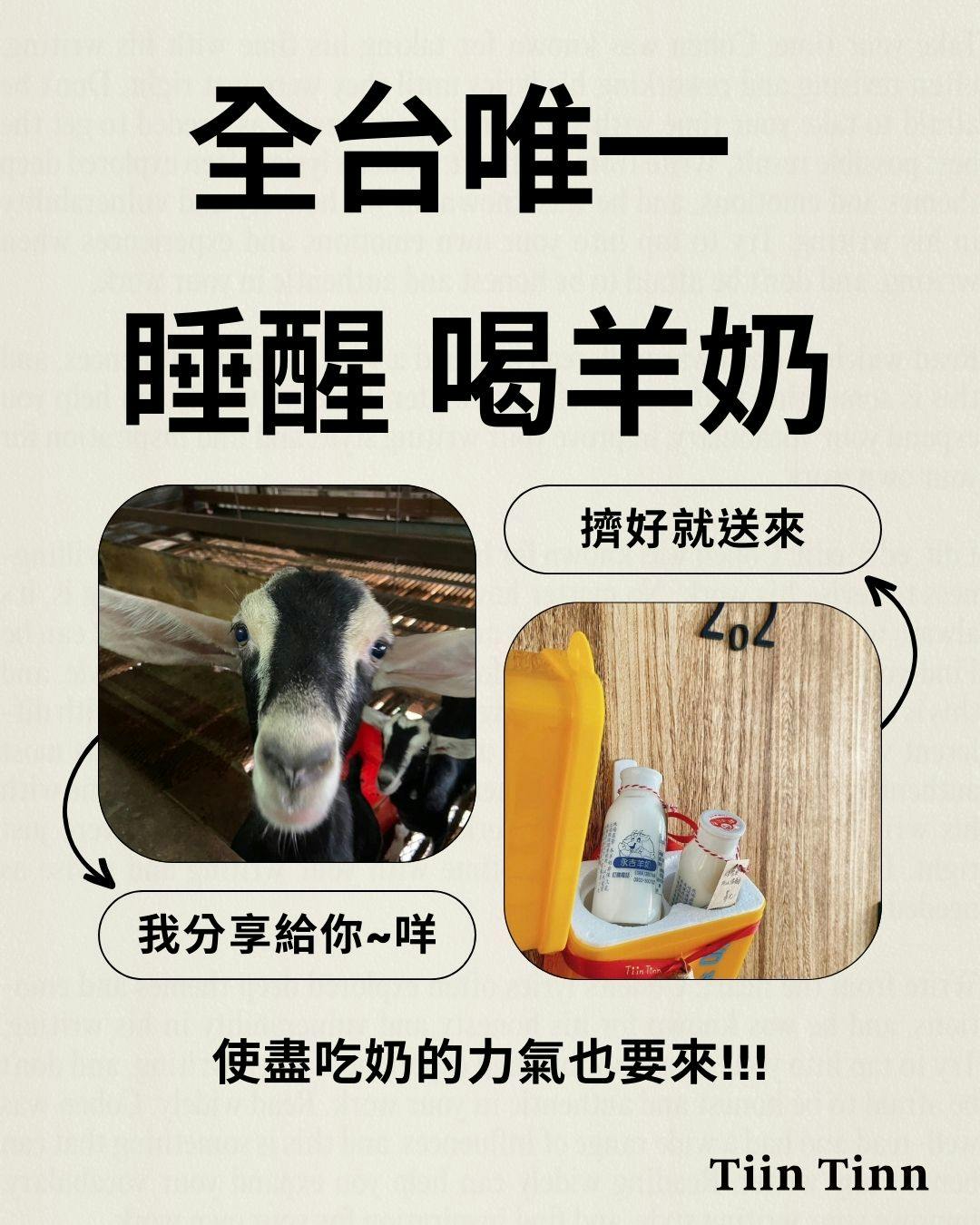 即日起,清晨現產的熱鮮羊奶,伴隨著羊奶哥爽朗的叫賣歌聲,直送門廷若室房門上,讓您一起床,就嚐到這段旅程中最暖心的味道。